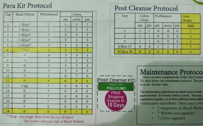 写真はOne life USAで購入した2キット分です。これを決められた期間に決められた数だけ飲めば、寄生虫を完全に駆除できるそうです。完全に駆除するとなるとハーブとの併用が必要になります。すべてのウイルス、細菌とflukeを含むすべての寄生虫を、ザッパーは効く範囲で殺します。いくらかの寄生虫等は、胆石、腎臓結石、膿瘍、腸内に残ってしまいます。だからと言って、ボルトを上げても何にもなりません。少量のBlack Walnut Hull Tincture Extra Strengthがそれらの場所まで届いて寄生虫を駆除します。