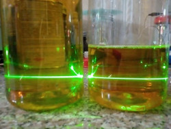 20ボルト前後が良いとされていますが、作っている環境や使っている物によってすべての人が同じCSを作れるわけではないので、いろいろと自分で材料や電流を変えて何度も作っていると、自分が満足するCSができる瞬間がいつかやってくると思います。濁りの無いレーザーも殆ど見えない、本当に透き通ったCSができた時には感動します。