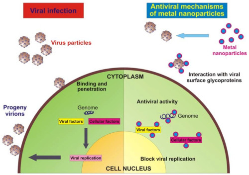 抗ウイルス効果は10 nm以下の粒子サイズで最大で、2~15 nmで効果があることが確認されている。コーティングされていないナノシルバー20ppm以上で細胞毒性あり